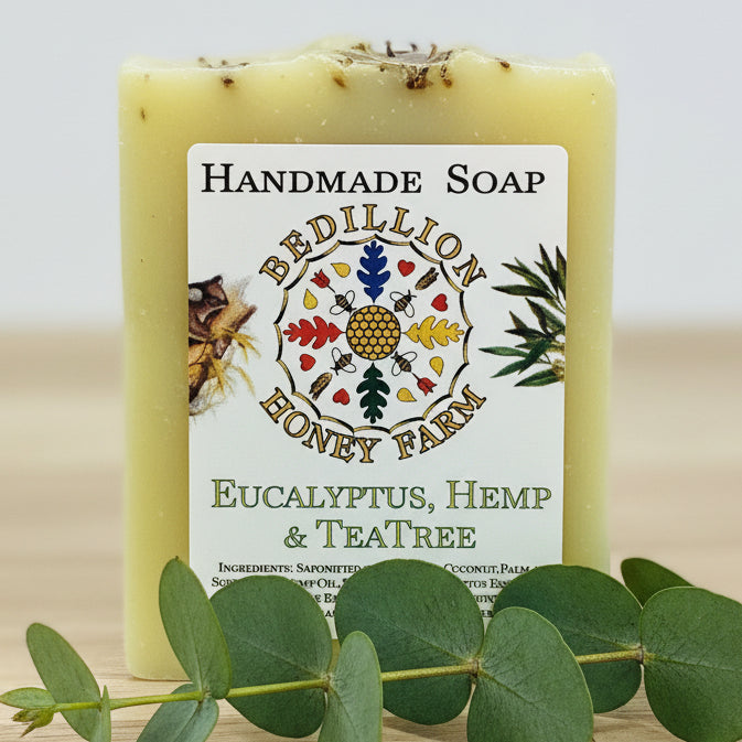 In search of a natural soap with clean & gentle ingredients, we developed these recipes to include the goodness of pure honey & beeswax. Natural handmade eucalyptus, hemp & tea tree soap with nourishing honey delivers creamy lather, refreshing scent and skin-cleansing botanicals for a truly invigorating cleanse.