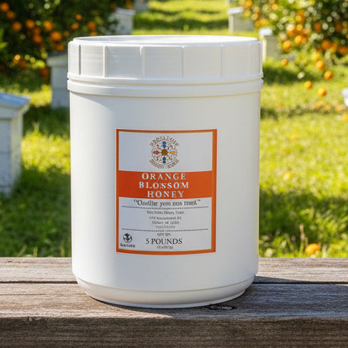 Raw Orange Blossom Honey in a 5 lb. container. (You pick your container type)