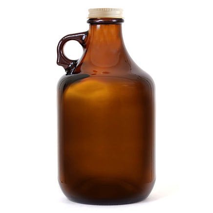 Empty amber 32 oz. growler jug. Made in the U.S. They measure 9" in height and are 3-1/2" in diameter. Metal Cap is included. Limited supply.