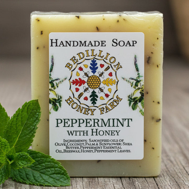 In search of a natural soap with clean & gentle ingredients, we developed these recipes to include the goodness of pure honey & beeswax. Natural handmade peppermint and honey soap delivers creamy lather, cool mint refreshment and skin-nourishing honey for a clean, awakened flush.